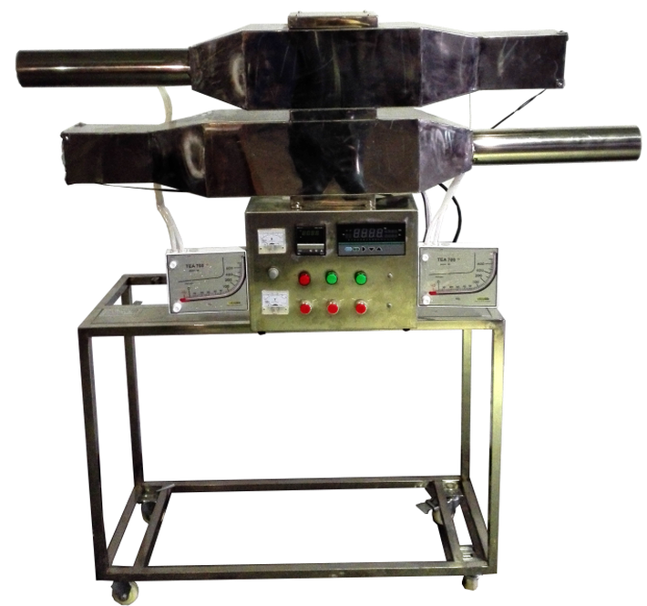 熱管換熱器,加熱段風道,受熱段風道,風機,畢托管流量計 及 差壓傳感器,加熱由固體調(diào)壓模塊無級調(diào)節(jié),萬能信號輸入巡檢儀顯示溫度、壓差,電流 表, 電壓表, 不銹鋼臺架及控制屏等。
