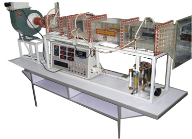 多翼式低噪音風(fēng)機(jī),自動調(diào)節(jié)風(fēng)門,組合式有機(jī)玻璃風(fēng)洞,有機(jī)玻璃實驗管段,紫銅平板試件,固體調(diào)壓模塊配電位器調(diào)節(jié)加熱功率,數(shù)顯電流表、電壓表顯示加熱電流電壓,風(fēng)流量由畢托管配差壓傳感器測量,溫度由 PT100熱電阻測量,8路萬能信號輸入巡檢儀顯示溫度、阻力、流量,不銹鋼支架。