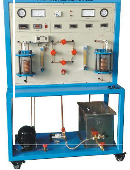 實驗裝置由電量熱器、制冷系統(tǒng)、溫度測試、流量測量以及控制系統(tǒng)等組成。制冷量 200W 左右;可以測定吸氣壓力、排氣壓力、、吸氣溫度、排氣溫度、量熱器入口溫度、 量熱器溫度、室內(nèi)環(huán)境溫度。
