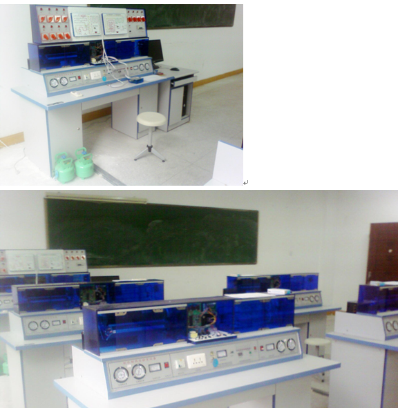 制冷制熱實驗室設備是新經(jīng)較大規(guī)模地升級而完成的 實驗臺 。 新增加其它類型的空調(diào)、冰箱系統(tǒng)及電路十幾個機種,有利于學生更全面地掌握制冷、 制熱技術。分體空調(diào)為立體結構:前面為仿真室內(nèi)機組,后面為仿真室外機組,室內(nèi) 機組改進為真實空調(diào)組件,外套真空調(diào)全透明外殼。冰箱方面也進行了結構上的改進, 前后格分開:前面為冷凍室,后面為電冰箱壓縮機、工作室等。 另外,為了克服冰箱、空調(diào)溫度顯示的問題,第六代產(chǎn)品增加了巡回檢測數(shù)碼溫 度顯示系統(tǒng),可以很直觀地觀察制冷及制熱系統(tǒng)中各關鍵點的溫度,并以數(shù)字的形式 顯示。