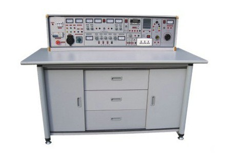 2、電子實驗室設備示教控制臺:由示教實訓操作桌、實訓臺、演示控制屏組成,能分別控制12臺學生實訓臺的電源。演示屏立在實訓臺上,尺寸為160×70cm,用于講解、演示。