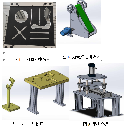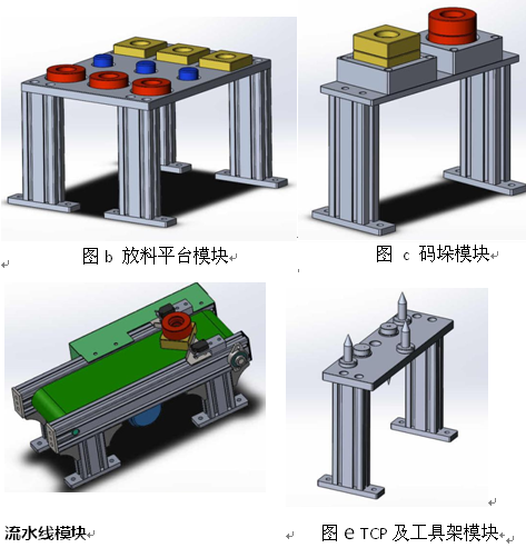 ( 2 ) . 此基礎(chǔ)平臺(tái)主要完成以下工作:來料、輸送、碼垛、分揀、裝配、檢測(cè)等,并搭載了 TCP 校點(diǎn)模塊、焊接 ( 涂膠 ) 軌跡模擬模塊。