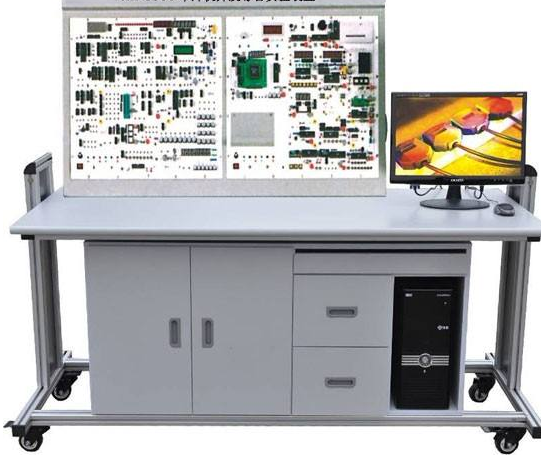 單片機開發(fā)應(yīng)用技術(shù)綜合實驗實訓(xùn)裝置實驗桌為鐵質(zhì)雙層亞光密紋噴塑結(jié)構(gòu),桌面為防火、防水、耐磨高密度板;左右設(shè)有兩個大抽屜(帶鎖),用于放置工具及資料,電腦桌聯(lián)體設(shè)計,造型美觀大方。