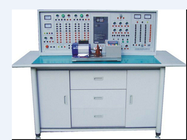 實(shí)訓(xùn)裝置由控制屏、實(shí)訓(xùn)桌、變頻實(shí)訓(xùn)組件、繼電接觸實(shí)訓(xùn)組件、數(shù)字量/模擬量輸入輸出給定指示組件、三相異步電機(jī)、電機(jī)導(dǎo)軌、測(cè)速機(jī)構(gòu)等組成。