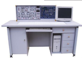 一桌為二座,桌面中央設(shè)置通用電路插板,元件盒在其上接插成實驗電路完成實驗。桌子左右各有一個柜,柜中存放元器件、貯存板及電腦,中間上層放置鍵盤、
