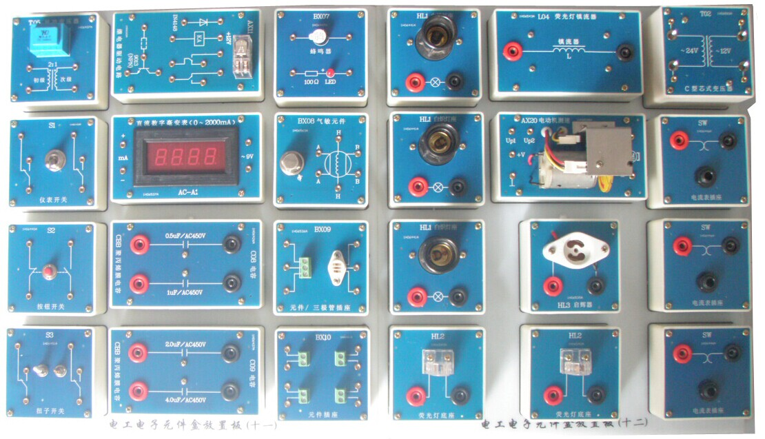 2、由學(xué)生獨(dú)立自主去搭建實(shí)驗(yàn)、實(shí)訓(xùn)電路,各種模塊精心配置,有多個應(yīng)用組合部件,模塊采用透明有機(jī)盒,兼作實(shí)物示教,一舉多得。電工電子單元模塊共有156個,其中不僅包括實(shí)訓(xùn)指導(dǎo)書項(xiàng)目所需的單元,還為學(xué)生可能進(jìn)行的創(chuàng)新與探索,配置了較齊全的單元。