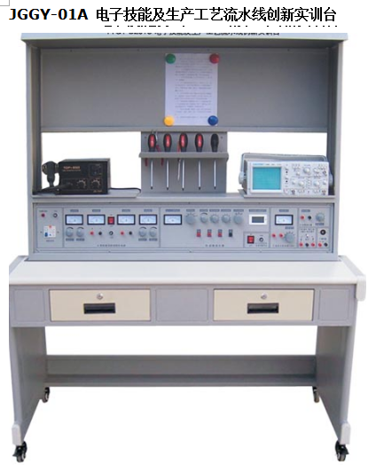3、功能齊全:電子工藝創(chuàng)新實(shí)訓(xùn)臺提供穩(wěn)壓電源、交流低壓電流、函數(shù)發(fā)生器、蜂鳴器、多路插座、調(diào)壓器等,為電子產(chǎn)品的測量調(diào)試和開發(fā)新產(chǎn)品提供豐富的資源。安裝日光燈照明、看板(用來夾資料)、儀器架、工具架。