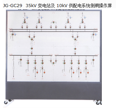 “JG-GC29 35kV 變電站及 10kV 供配電系統(tǒng)倒閘操作屏 ” 是針對變電站倒閘操作而專門研制的實(shí)訓(xùn)裝置。本系統(tǒng)含 35kV 、 10kV 和 0.4kV 三個(gè)電壓等級: 35kV 具有 4 路進(jìn)線,雙母帶聯(lián)絡(luò); 10kV 側(cè)采用單母分段,兩入兩出,環(huán)網(wǎng)供電; 0.4kV 側(cè)采用單母分段,并具有備用發(fā)電系統(tǒng)。在此典型 35kV 變電站模型上,學(xué)生可以進(jìn)行各種工況下的倒閘操作。變電站的電壓等級和結(jié)線方式也可以根據(jù)用戶要求設(shè)計(jì)。因此本裝置適合各類職業(yè)院校供配電類、電力公司、職業(yè)技能培訓(xùn)部門等機(jī)構(gòu)的培訓(xùn)、考核。