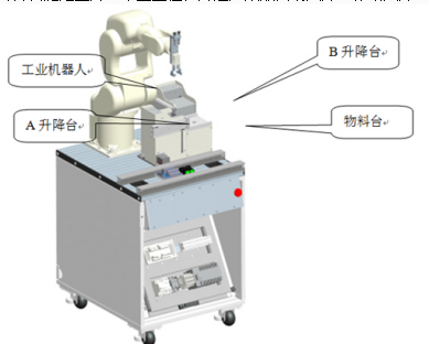 AB兩個(gè)升降臺(tái)分別存儲(chǔ)包裝盒底和包裝盒蓋;工業(yè)機(jī)器人包裝工作站啟動(dòng)后,A升降臺(tái)將包裝盒底推向物料臺(tái)上,A升降臺(tái)隨之上升一個(gè)盒底位;等待上一站檢測(cè)合格的物料瓶到位,當(dāng)上一站合格物料瓶到位,啟動(dòng)工業(yè)機(jī)器人將瓶子抓取,并放入物料臺(tái)上的包裝盒底內(nèi);當(dāng)包裝盒底4個(gè)工位放滿瓶子,工業(yè)機(jī)器人自動(dòng)從B升降臺(tái)上吸取盒蓋,蓋在包裝盒上,B升降臺(tái)隨之上升一個(gè)盒蓋位,并通知成品自動(dòng)入庫(kù)工作站入庫(kù)。