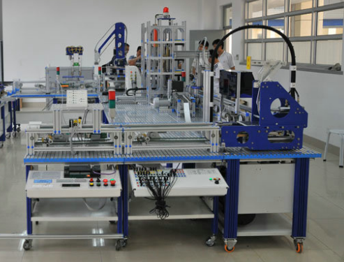 專門為職業(yè)院校、職業(yè)教育培訓機構(gòu)研制的FMS柔性生產(chǎn)實驗系統(tǒng),根據(jù)機電類、自動化類、先進制造類行業(yè)、企業(yè)中工業(yè)對工業(yè)現(xiàn)場設(shè)備進行提煉和濃縮,并針對實驗教學活動進行專門設(shè)計,融機、光、電、氣,包含了PLC、機器人、傳感器、氣動、工業(yè)控制網(wǎng)絡(luò)、電機驅(qū)動與控制、計算機等諸多技術(shù)領(lǐng)域,整個系統(tǒng)由MES生產(chǎn)管理系統(tǒng)自動化應(yīng)用的特點,對柔性制造技術(shù)的工作過程進行研究,、MCGS監(jiān)控系統(tǒng)、主控PLC和下位PLC通過網(wǎng)絡(luò)通訊技術(shù)構(gòu)成一個完整的多級計算機控制系統(tǒng),通過訓練,使學生了解FMS的基本組成和基本原理,讓學生全面掌握機電一體化技術(shù)的應(yīng)用開發(fā)和集成技術(shù),幫助學生從系統(tǒng)整體角度去認識。