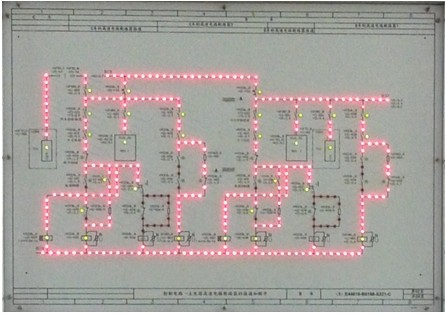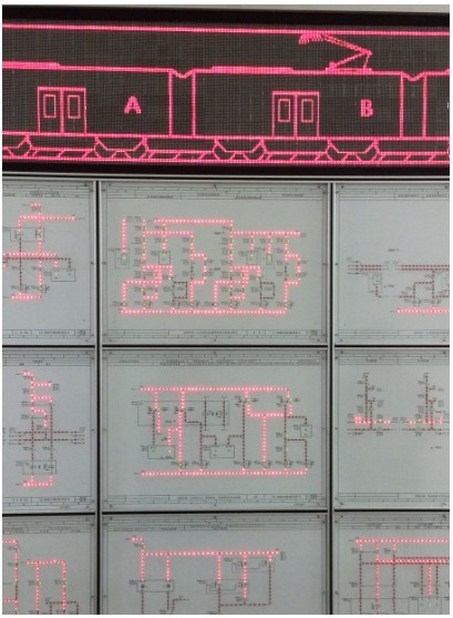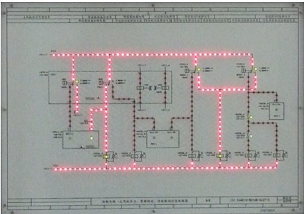 本系統(tǒng)使用真實走線、真實器件及LED流水燈等方式,真實、直觀、動態(tài)的呈現(xiàn)出地鐵列車電氣回路的控制邏輯;使用LED點陣顯示屏與列車電氣回路動作關聯(lián),演示列車升降弓、高斷閉合斷開、列車牽引制動、列車前進后退等動畫效果圖;在電路中設置故障開關和電路測試點,可人為切斷電路回路仿真電路故障,通過工具測量、分析后可排除故障。
