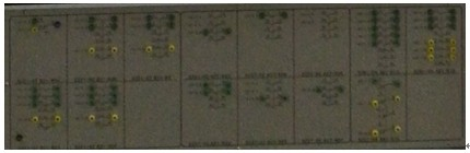 (五)系統(tǒng)中設計有一個獨立加鎖的開關掛箱和多幅電路測試點面板。掛箱里面設置了幾十個通斷開關,每個通斷開關對應一個故障設置點,開關閉合表示線路通無故障,開關斷開表示線路斷有故障;電路測試點面板中,引出了列車電氣回路中主要繼電器的觸點測試點,可供學生測試觸點通斷或有無電。如下圖所示,圖5-1 測試點面板。
