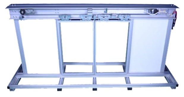 地鐵站臺屏蔽門系統(tǒng)模擬實驗實訓裝置是地鐵站臺設施的核心裝備,屏蔽門系統(tǒng)按照預定的控制要求完成屏蔽門的開通和關閉。但地鐵站臺屏蔽門系統(tǒng)占地面積較大以及重量較重,而且涉及安全等諸多因素,學員很難進行地鐵站臺系統(tǒng)實操。為了解決以上問題,開發(fā)了地鐵站臺屏蔽門系統(tǒng)模擬實驗實訓裝置。該裝置主要包括屏蔽門機械結構、防夾傳感器、門控無刷直流電動機、減速器、皮帶傳送系統(tǒng)、屏蔽門本地單元控制子系統(tǒng)、單側端頭控制子系統(tǒng)、中央控制子系統(tǒng)、緊急控制子系統(tǒng)以及站臺監(jiān)控子系統(tǒng)等組成。學員利用該設備可以直觀了解地鐵站屏蔽門系統(tǒng)各個組成結構和完成功能,加深學員對地鐵站臺屏蔽門系統(tǒng)工作原理的認識,完成地鐵站臺屏蔽門系統(tǒng)正常使用、日常維護、落成實驗以及故障處理等實驗實訓。