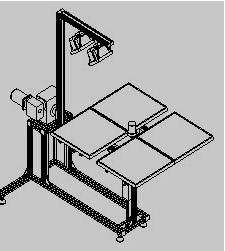 4塊光伏電池組件并聯(lián)組成光伏電池方陣,光線傳感器安裝在光伏電池方陣中央。2盞300W的投射燈安裝在擺桿支架上,擺桿底端與減速箱輸出端連接,減速箱輸入端連接單相交流電動(dòng)機(jī)。電動(dòng)機(jī)旋轉(zhuǎn)時(shí),通過(guò)減速箱驅(qū)動(dòng)擺桿作圓周擺動(dòng)。擺桿底端與底座支架連接部分安裝了接近開(kāi)關(guān)和微動(dòng)開(kāi)關(guān),用于擺桿位置的限位和保護(hù)。水平和俯仰方向運(yùn)動(dòng)機(jī)構(gòu)由水平運(yùn)動(dòng)減速箱、俯仰運(yùn)動(dòng)減速箱、直流電動(dòng)機(jī)、接近開(kāi)關(guān)和微動(dòng)開(kāi)關(guān)組成。直流電動(dòng)機(jī)旋轉(zhuǎn)時(shí),水平運(yùn)動(dòng)減速箱驅(qū)動(dòng)光伏電池方陣作向東方向或向西方向的水平移動(dòng)、俯仰運(yùn)動(dòng)減速箱驅(qū)動(dòng)光伏電池方陣作向北方向或向南方向的俯仰移動(dòng),接近開(kāi)關(guān)和微動(dòng)開(kāi)關(guān)用于光伏電池方陣位置的限位和保護(hù)。