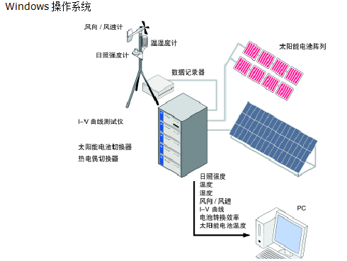 準(zhǔn)確測(cè)試光伏方陣和組件在野外條件下的太陽(yáng)輻射強(qiáng)度,環(huán)境溫度,風(fēng)速,電池組件的溫度,開路電壓、短路電流、最大功率、最大功率點(diǎn)電壓、最大功率點(diǎn)電流和填充因子測(cè)算光伏方陣和組件在標(biāo)準(zhǔn)測(cè)試條件下(STC)下的開路電壓、短路電流、最大功率、最大功率點(diǎn)電壓、最大功率點(diǎn)電流、填充因子和轉(zhuǎn)換效率