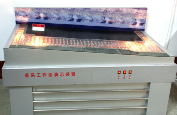 普采工作面生產(chǎn)系統(tǒng)及安全演示裝置電動演示普采工作面開采生產(chǎn)工藝過程,通過機械傳動技術顯示采煤機、轉載機、刮板機、皮帶運輸工藝流程,單體液壓支柱,交接頂梁的布置。