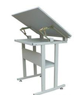 2 、工業(yè)桌面標(biāo)配灰白三聚氰胺貼面防火板, PVC 高溫封邊。傾角采用彈簧鉸鏈無(wú)級(jí)調(diào)節(jié)傾角,傾角范圍 0°—85° ,同時(shí)具有鎖定裝置,確保傾斜角度不滑動(dòng)。