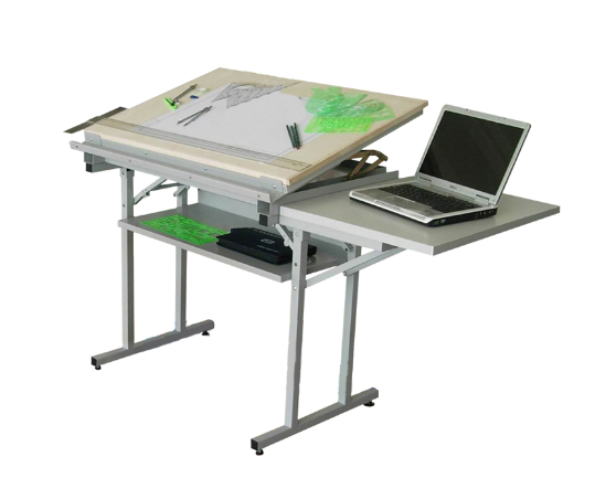 桌面板采用東北優(yōu)質(zhì)加厚椴木材料的 1 號繪圖板,并可調(diào)節(jié)傾角 0°-85° ,桌面下部有儲物隔板,可以放置書包、文具和圖紙等物品