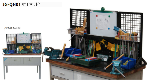 鉗工實 訓(xùn)臺 是我公司根據(jù)教學(xué)大綱要求及學(xué)員實訓(xùn)操作需要而開發(fā)的。所配置的工具是標(biāo)準(zhǔn)化和專業(yè)化的,盡可能提高學(xué)生的操作技術(shù)和動手能力,加工質(zhì)量的好壞取決于操作者的技術(shù)高低,鉗工工具采用通用化、標(biāo)準(zhǔn)化和專業(yè)化,可提高學(xué)生的操作技術(shù)和動手能力。鉗工大多是在鉗工臺上用手工工具操作為主,對工件進行加工。手工操作的特點是要求技術(shù)性強,產(chǎn)品加工質(zhì)量的好壞主要取決于操作者技術(shù)水平的高低,它的工作范圍較廣,具有萬能性和靈活性的優(yōu)勢且不受設(shè)備、場地等條件的限制,因此凡是采用機械加工方法不太適宜或難以進行機械加工的場合,通常由鉗工來完成,尤其是機械產(chǎn)品的裝配、調(diào)試、安裝和維修等更需要鉗工,所以鉗工是機械制造工廠中應(yīng)用最廣泛的工種之一。該實驗室設(shè)備可以完成常用工具的認(rèn)識和使用,錘、鋸、鑿、劃線、裝配、調(diào)試、安裝、維修等教學(xué)工具。