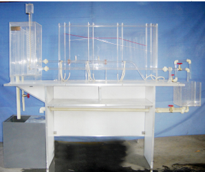 供水箱(工程塑料厚4mm、容積約0.05立方米)、穩(wěn)壓水箱(有機玻璃厚4mm、容積約0.025立方米)、雷諾實驗管道(有機玻璃厚3mm、內(nèi)徑14mm)、伯努利實驗管道(有機玻璃厚3mm、內(nèi)徑D1=14mm、D2=25mm)、顏色罐、針閥、水泵(型號:AP3500,產(chǎn)地:廣東振華電器有限公司)、計量水箱(有機玻璃厚4mm,容積10L)、壓差板、循環(huán)管道(工程塑料厚3mm)、實驗桌等。