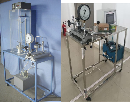 實驗臺本體、壓力臺( 0~60mpa )、恒溫器、標準壓力表( 0-16 mpa )、主容器管及水套、儀表箱、測溫?zé)犭娕、連接管路、防護罩、實驗臺支架。