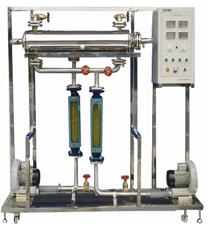 實驗?zāi)康模?、測量翅片管式熱管換熱器熱量與分析熱端介質(zhì)溫度關(guān)系;2、可進行熱管傾斜角度對熱管工作性能影響的實驗。主要配置:列管換熱器、風(fēng)機、溫度傳感器、智能巡檢儀、加熱筒、配套臺架及控制屏等主要技術(shù)參數(shù):1、輸入電源:兩相AC220V,50HZ,功率4KW;2、風(fēng)機:采用旋渦氣泵,功率550W,最大風(fēng)量90m3/h,最大風(fēng)壓13KPa;3、列管換熱器:換熱管規(guī)格?12×1500mm,304不銹鋼材質(zhì);4、加熱筒:加熱功率3KW,304不銹鋼材質(zhì);5、溫度傳感器:K型熱電偶6支,Pt100鉑電阻1支;6、外形尺寸:1800×500×1800mm,框架采用304不銹鋼或高品質(zhì)鋁型材可移動支架,帶腳輪與禁錮腳。