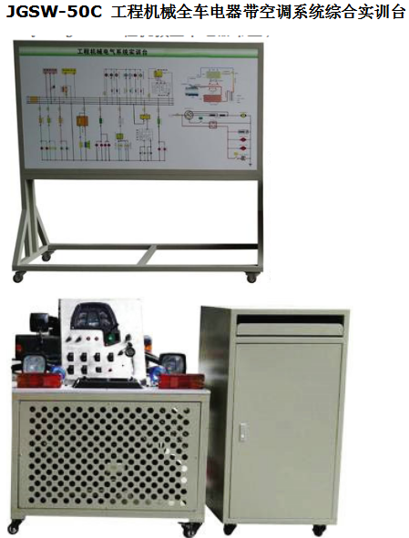 該工程機(jī)械全車電器帶空調(diào)系統(tǒng)綜合實(shí)訓(xùn)臺(tái)采用ZC50工程機(jī)械整車電器與空調(diào)系統(tǒng)實(shí)物為基礎(chǔ),充分展示儀表系統(tǒng)、燈光系統(tǒng)、雨刮系統(tǒng)、喇叭系統(tǒng)、發(fā)動(dòng)機(jī)電器系統(tǒng)、起動(dòng)系統(tǒng)和充電系統(tǒng)等電器各系統(tǒng)與空調(diào)系統(tǒng)的組成結(jié)構(gòu)和工作過程。