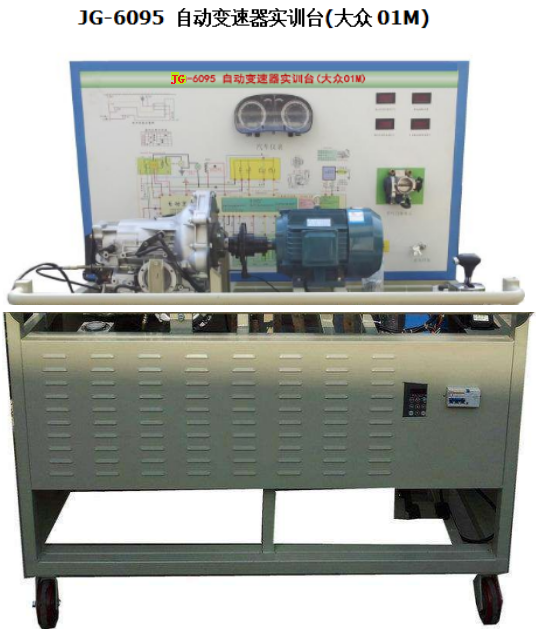 該自動變速器實訓臺(大眾01M)采用翻新大眾01M電控自動變速器總成為基礎(chǔ),可調(diào)速三相異步電動機做動力源,對自動變速器進行檔位顯示、空檔起動、前進檔及倒檔運行等工況實踐操作。真實展示電控自動變速器組成結(jié)構(gòu)和工作過程。