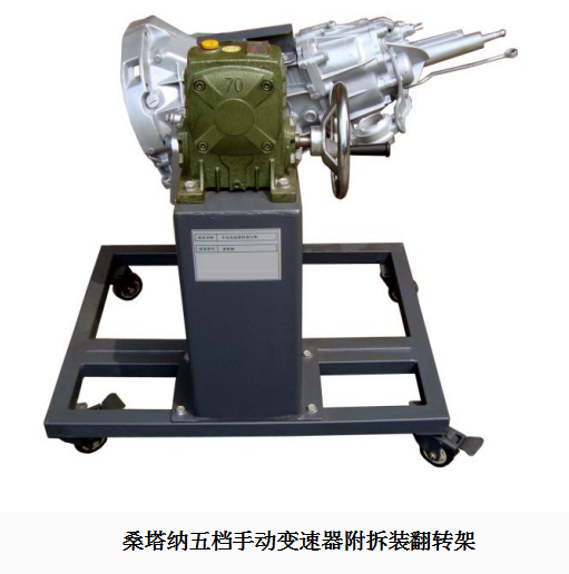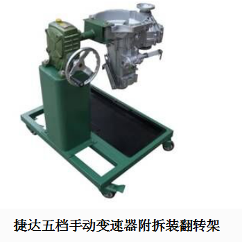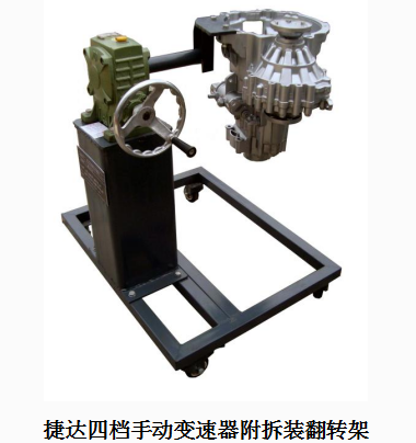 采用減速翻轉(zhuǎn)機構(gòu),可使變速器旋轉(zhuǎn)任意角度,并能任意位置鎖止,便于學(xué)生從不同的角度進(jìn)行拆卸和裝配。