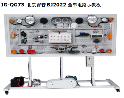 該北京吉普BJ2022全車電路示教板采用整車電器實物為基礎,充分展示汽車儀表系統(tǒng)、燈光系統(tǒng)、雨刮系統(tǒng)、喇叭系統(tǒng)、發(fā)動機電器系統(tǒng)、起動系統(tǒng)和充電系統(tǒng)等汽車電器各系統(tǒng)的組成結構和工作過程。
