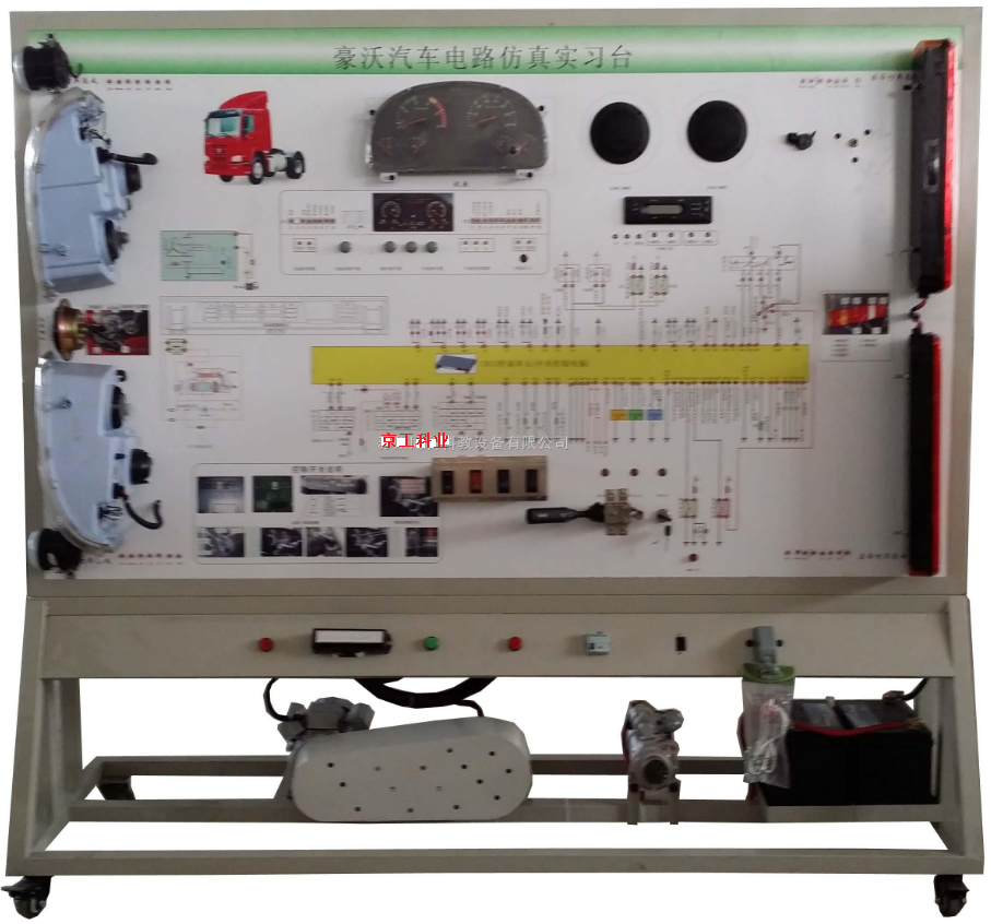 豪沃汽車電路仿真實(shí)習(xí)臺(tái)采用全新原整車電器實(shí)物為基礎(chǔ),充分展示汽車儀表系統(tǒng)、燈光系統(tǒng)、雨刮系統(tǒng)、喇叭系統(tǒng)、發(fā)動(dòng)機(jī)電器系統(tǒng)、起動(dòng)系統(tǒng)和充電系統(tǒng)等汽車電器各系統(tǒng)的組成結(jié)構(gòu)和工作過程。