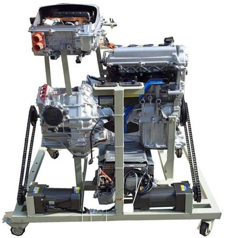 豐田普銳斯混聯(lián)式混合動力系統(tǒng)(包括:發(fā)動機(jī)、發(fā)電機(jī)和電動機(jī)等)總成,三相齒輪減速感應(yīng)電機(jī),三相漏電保護(hù)開關(guān),移動臺架(帶自鎖腳輪裝置).