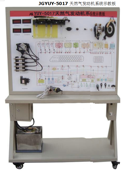 2. 示教板面板采用4mm厚耐腐蝕、耐創(chuàng)擊、耐污染、防火、防潮的高級鋁塑板,表面經(jīng)特殊工藝噴涂底漆處理;面板打印有不褪色的彩色電路圖與工作原理示意圖;學(xué)員可直觀對照天然氣發(fā)動機(jī)系統(tǒng)結(jié)構(gòu)原理圖和實物,認(rèn)識和分析天然氣發(fā)動機(jī)系統(tǒng)的工作原理。