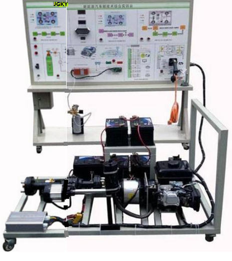 發(fā)電機、發(fā)動機、燃料電池及運行附件、電池組、逆變器、三相交流電機、傳動機構(gòu)、制動機構(gòu)、故障模擬與考核裝置、檢測面板與可移動臺架等組成。