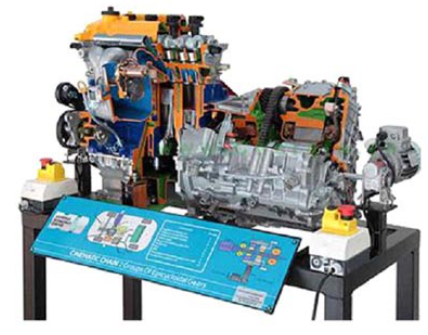 該油電混合動(dòng)力汽車動(dòng)力系統(tǒng)解剖演示臺(tái)采用豐田普銳斯混聯(lián)式混合動(dòng)力系統(tǒng)(包括:發(fā)動(dòng)機(jī)、發(fā)電機(jī)和電動(dòng)機(jī)等)總成進(jìn)行剖面處理,各部件齊全,剖面位置合理,能全面展示混聯(lián)式混合動(dòng)力系統(tǒng)內(nèi)外部結(jié)構(gòu)和部件的運(yùn)動(dòng)情況,并可通過MCU控制系統(tǒng)模擬混合動(dòng)力系統(tǒng)的啟動(dòng)、低速行駛、一般行駛、全速行駛、減速行駛和停車六種工況下的混聯(lián)式混合動(dòng)力系統(tǒng)運(yùn)行狀態(tài),更加直觀地的掌握豐田普銳斯混聯(lián)式混合動(dòng)力系統(tǒng)工作原理。適用于混合動(dòng)力汽車動(dòng)力系統(tǒng)原理和機(jī)械機(jī)構(gòu)的教學(xué)。