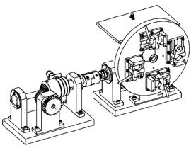 主要配置由 : 圓柱凸輪機構、軸承座、直線導軌副、錐齒輪機構、矩形槽滑動板、絲桿調(diào)節(jié)機構、支架、軸、端蓋、鍵等。 |