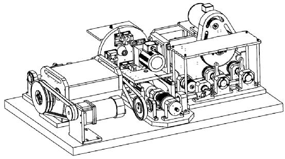 主要配置由 : 偏心輪、偏心連桿、雙向螺桿、導軌滑塊、曲柄、傳動軸、齒輪、齒條、移動凸輪、軸承座、軸承等。 |