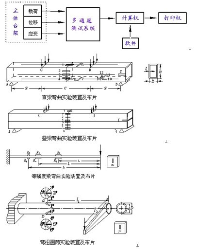 網(wǎng)上實(shí)驗(yàn)方案設(shè)計(jì)系統(tǒng),在材料力學(xué)實(shí)驗(yàn)中,配套組合試驗(yàn)臺(tái),開發(fā)出了網(wǎng)上實(shí)驗(yàn)方案設(shè)計(jì)系統(tǒng)。該軟件包含十二個(gè)實(shí)驗(yàn)項(xiàng)目,可以組合 50 多種實(shí)驗(yàn)方案。應(yīng)用此軟件進(jìn)行方案設(shè)計(jì),對(duì)同一實(shí)驗(yàn)項(xiàng)目可以設(shè)計(jì)出多種實(shí)驗(yàn)方案。就每一方案而言,要分析選擇不同的裝置、試件、測(cè)點(diǎn);不同的應(yīng)變片、補(bǔ)償方式、橋路連接、橋臂系數(shù);不同的杠桿比、加載方式;不同的應(yīng)力狀態(tài),計(jì)算公式。通過一系列的分析選擇而后組成一個(gè)實(shí)驗(yàn)方案,打印輸出。。