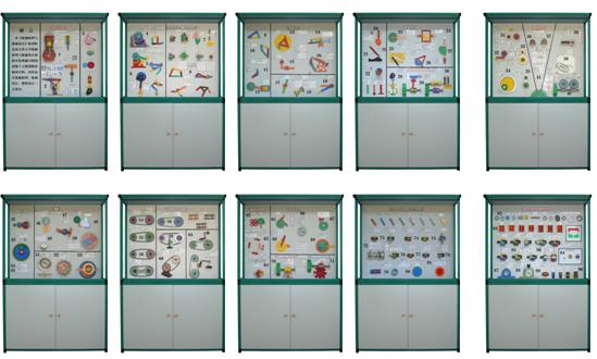 本《機械原理與機械設(shè)計》陳列柜是根據(jù)天津大學(xué)機械原理與機械設(shè)計教研室集體編寫的國家級十五規(guī)劃教材而設(shè)計的一套電化多媒體教學(xué)設(shè)備,內(nèi)容包含 機械 原理、機械設(shè)計、課程設(shè)計三大部分。陳列柜共分十個柜和一個電腦控制臺,進(jìn)行多媒體聲控同步解說演示。由 PC 機電腦控制順序或任選運行每個柜模型動作,同時電腦播放圖形同步模型動作。并且每個柜的內(nèi)容在電腦里用 PPT 格式 編寫,內(nèi)容包含機械原理、機械設(shè)計、課程設(shè)計等教程數(shù)據(jù),采用 Microsoft PowerPoint 演示文稿進(jìn)行幻燈片放映,方便學(xué)員課外進(jìn)行學(xué)習(xí)和研究。 本陳列柜上下柜整體采用彩色塑鋼結(jié)構(gòu),堅固耐用,外形美觀。
