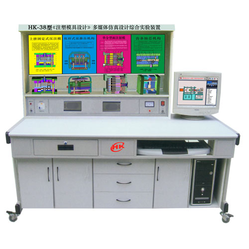 《塑料模具設(shè)計(jì)與制造》多媒體仿真設(shè)計(jì)綜合實(shí)驗(yàn)裝置 一、概述 適用于《塑料模具設(shè)計(jì)與制造》、《注塑模具》等課程。本實(shí)驗(yàn)臺(tái)以教育部高教司《關(guān)于加強(qiáng)高職高專人才培養(yǎng)工作的若干意見(jiàn)》等文件對(duì)高職高專人才培養(yǎng)的要求為指導(dǎo)思想,按專業(yè)服從市場(chǎng),課程服務(wù)于專業(yè)的原則,積極進(jìn)行課程教學(xué)改革。以培養(yǎng)學(xué)生從事塑料模具設(shè)計(jì)與制造工作能力為核心,采用多種素材和媒體手段,重點(diǎn)講述注射模、壓縮模、壓注模、擠出機(jī)頭設(shè)計(jì)及制造,熱流道模具等先進(jìn)模具技術(shù)。實(shí)驗(yàn)裝置采用塑料模具設(shè)計(jì)多媒體軟件用電腦動(dòng)畫(huà)語(yǔ)音演示模具功能和原理,同時(shí)配合實(shí)物模具模型;多媒體軟件包含38件模具動(dòng)畫(huà)內(nèi)容;實(shí)驗(yàn)裝置采用30件模型和38塊說(shuō)明模塊板供學(xué)生使用;模型和模塊板可隨課程內(nèi)容需要進(jìn)行更換操作。 二、產(chǎn)品特點(diǎn) 1、實(shí)驗(yàn)臺(tái)采用P4電腦主機(jī)一臺(tái)、22寸顯示器一臺(tái)、鼠標(biāo)、鍵盤(pán)各一個(gè)。 2、利用多媒體軟件界面,用二/三維動(dòng)畫(huà)生動(dòng)演示各種模具結(jié)構(gòu)功能和原理(開(kāi)模、閉模、出制件)的全過(guò)程、并且采用語(yǔ)音講解各種模具功能和原理,使學(xué)生實(shí)現(xiàn)理論與實(shí)際的緊密結(jié)合。 3、利用模塊板文字圖表說(shuō)明文件,指導(dǎo)學(xué)生獨(dú)立分析模具結(jié)構(gòu)和運(yùn)動(dòng)方式,培養(yǎng)看圖識(shí)圖分析能力。 4、利用實(shí)物模具模型讓學(xué)生深入了解模具組成和結(jié)構(gòu)原理,增加學(xué)生設(shè)計(jì)與分析課程內(nèi)容,培養(yǎng)學(xué)生的創(chuàng)新意識(shí)。 5、實(shí)驗(yàn)裝置采用30件塑料模具模型和38塊文字圖表板,分別介紹各種塑料模具的功能和結(jié)構(gòu)及用途和作用。 6、本裝置采用組件式結(jié)構(gòu),更換文字圖表板和模具模型便捷,如需擴(kuò)展功能或開(kāi)發(fā)新實(shí)驗(yàn),只需添加文字圖表板和模型即可。 四、主要技術(shù)參數(shù) 1、工作電源:?jiǎn)蜗?20V交流電源。 2、結(jié)構(gòu):實(shí)驗(yàn)臺(tái)為鐵質(zhì)鈑金噴塑結(jié)構(gòu),堅(jiān)固耐用。 3、工作環(huán)境:溫度-100-+400C。 4、整機(jī)功耗:<0.5KW 5、實(shí)驗(yàn)臺(tái)外形尺寸:1600×750×1750mm