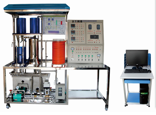 , , 過程控制包括一組有機(jī)玻璃三(兩)容水箱,每個水箱裝有液位傳感變送器;同時具有兩路供水系統(tǒng),一路由進(jìn)口動力水泵、調(diào)節(jié)閥、電磁流量計組成,另一路由變頻器、進(jìn)口動力水泵、渦輪流量計組成,通過閥門切換,任何一組供水可以到達(dá)任何一個水箱。另外,為實現(xiàn)溫度控制,該實驗裝置專門設(shè)計了一只由帶夾套鍋爐、防干燒裝置組成的常壓電加熱鍋爐。鍋爐分內(nèi)膽和夾套兩層,內(nèi)膽由電加熱器提供熱源,由一路供水系統(tǒng)提供水源,鍋爐內(nèi)膽裝有防干燒裝置來確保設(shè)備安全;夾套由一路供水系統(tǒng)提供冷卻水。通過改變電加熱器的加熱功率或冷卻水 / 待加熱水的流量來影響內(nèi)膽水溫和夾套水溫。鍋爐內(nèi)膽和夾套均安裝有熱電阻測溫元件。