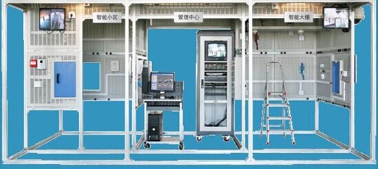 結(jié)構(gòu)上以智能建筑模型為基礎(chǔ),包含了智能大樓、智能小區(qū)、管理中心和樓道等典型結(jié)構(gòu),涵蓋了對(duì)講門(mén)禁、安防、視頻監(jiān)控、消防、綜合布線和 DDC 監(jiān)控照明六個(gè)系統(tǒng),各系統(tǒng)既可獨(dú)立運(yùn)行,也可實(shí)現(xiàn)聯(lián)動(dòng)。通過(guò)此系統(tǒng)進(jìn)行項(xiàng)目訓(xùn)練,檢驗(yàn)學(xué)生的團(tuán)隊(duì)協(xié)作能力、計(jì)劃組織能力、樓宇設(shè)備安裝與調(diào)試能力、工程實(shí)施能力、職業(yè)素養(yǎng)和交流溝通能力等。