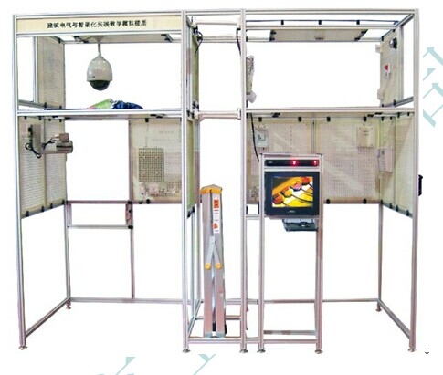 是由鋁合金骨架和活動(dòng)網(wǎng)孔板組合而成的兩層建筑平臺(tái),分別模擬一棟建筑的首層機(jī)房、二層住戶、首層樓道、二層樓道、垂直豎井和建筑周邊。房間提供正反側(cè)墻和頂墻的安裝范圍,同時(shí)還提供房間大門,可在上面安裝電插鎖、電磁鎖、門磁和閉門器等器件,可實(shí)現(xiàn)智能建筑各類系統(tǒng)的安裝與運(yùn)行,如“對(duì)講門禁及室內(nèi)安防系統(tǒng)”和“閉路電視監(jiān)控及周邊安防系統(tǒng)”等。