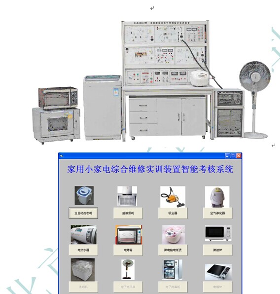 實(shí)訓(xùn)掛件由電子電風(fēng)扇、微電腦控制電飯鍋、微波爐、全自動洗衣機(jī)、電烤箱、消毒柜等組成。掛件均可設(shè)置故障點(diǎn)、完成排除故障等實(shí)訓(xùn)內(nèi)容。