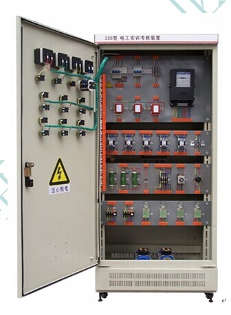 設(shè)備以標(biāo)準(zhǔn)的配電柜為主柜,利用柜體的雙面空間,科學(xué)地布置電器及配套實(shí)驗(yàn)器材。該柜設(shè)計(jì)合理,實(shí)操方便,一柜多用,所有電器元件接點(diǎn)都已接到接線(xiàn)端子上,學(xué)生只需在接線(xiàn)端子上接線(xiàn)實(shí)驗(yàn),延長(zhǎng)了電器元件使用壽命、降低了材料損耗。