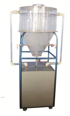有機(jī)玻璃水力循環(huán)澄清池、 PVC 水箱、不銹鋼進(jìn)水泵、轉(zhuǎn)子流量計、中心導(dǎo)流調(diào)節(jié)器、進(jìn)水噴嘴、污泥導(dǎo)流器、污泥斗、排泥閥、出水平衡槽、不銹鋼臺架、排水管、 防污電器控制箱、 配套連接管閥。