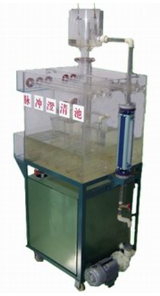 有機玻璃脈沖澄清池、進水管、放空管、水泵、配水箱、轉(zhuǎn)子流量計、連接管道和球閥、電控箱、不銹鋼臺架。