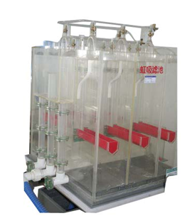 虹吸濾池為透明有機(jī)玻璃制造,可觀察污水在各腔室內(nèi)的運(yùn)行情況。