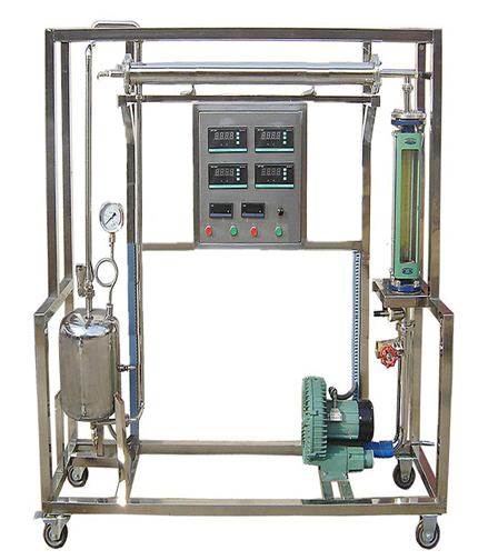 套管換熱器、蒸汽發(fā)生器、氣泵、熱電偶、數(shù)顯儀表、壓力表、熱球風(fēng)速儀或轉(zhuǎn)子流量計、實驗管道、閥門、不銹鋼框架、控制屏。
