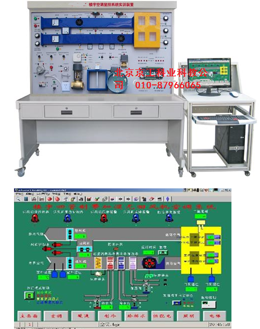 樓宇空調(diào)監(jiān)控系統(tǒng)實驗實訓裝置,元器件均采用實物,整個實訓裝置主要由數(shù)字控制器、 LON 卡、溫度控制器、傳感器、電表系列、電磁閥、變壓器、風閥驅(qū)動器系統(tǒng)等組成。